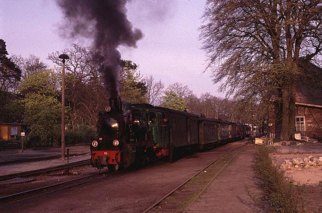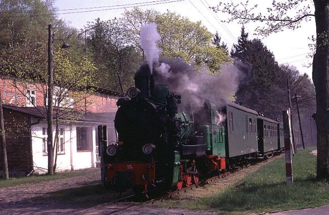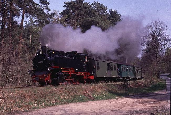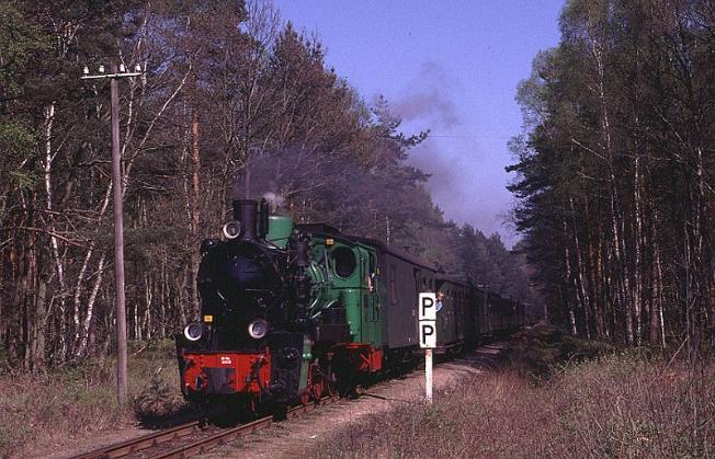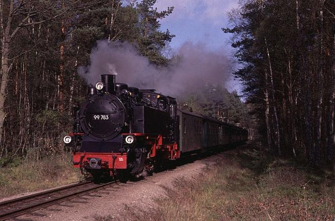 | No.99-783 working an afternoon train through the woods near Baabe, a short distance out of Gohren. By this time of the day the sun is very firmly on the smokebox |