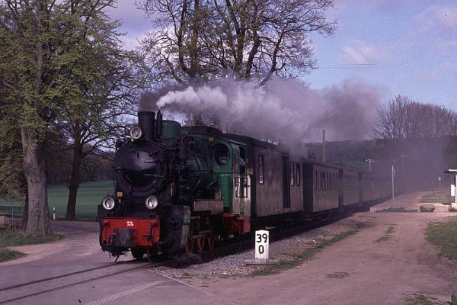 | The largely rural nature of the Isle Of Rugen is well illustrated as No.53Mh trundles through Serams station with an afternoon train to Pitbus |