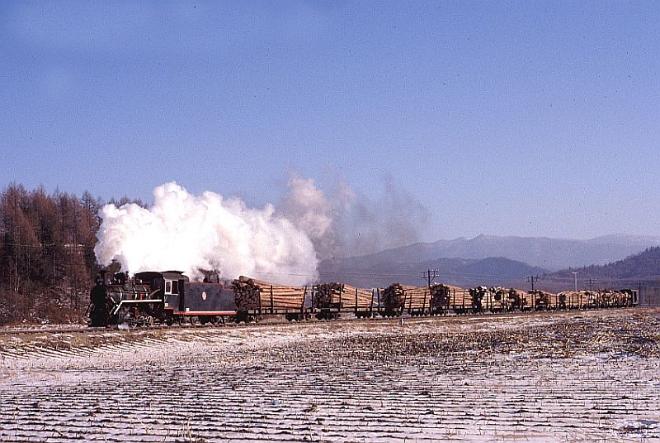 | Our visit to the North-East of China was blessed with fantastic weather and preceeded by a light dusting of snow - a terrific combination for photography. In this picture Class C2 0-8-0 No.54 passes with a train of empty log wagons between Weihe and Zhenzhu |