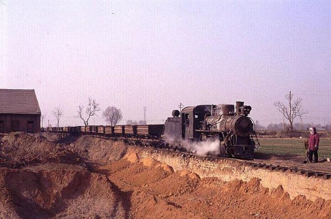 | No.207 shunts its rake of wagons at the servicing point in Xingyang Brickworks. There were three offloading points for the clay - two to the west of the servicing point and one further to the easy |