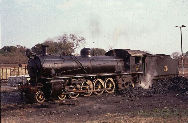 | In the yard at Victoria Falls was North British built 4-8-2 12th Class No.204. Now bearing the ZR of Zambia Railways this engine was originally part of Rhodesian Railways but is now owned by the Livingstone Railway Museum and is one of four operable memebers of the class. At Vic Falls its job is to haul tourist trains across the bridge. |
